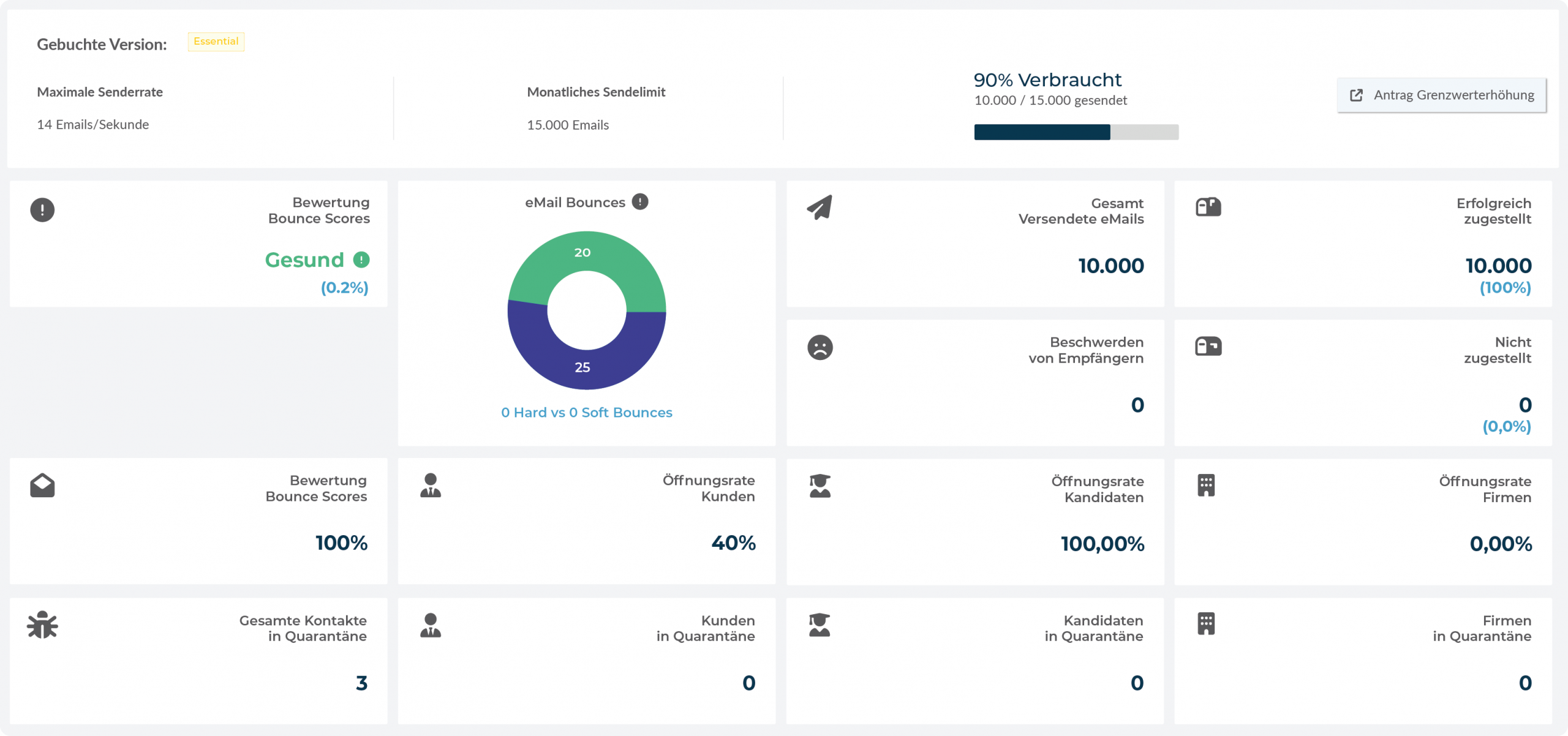 Zustellung, Eröffnung, Reklamationen Hard-/Soft-Bounces, Klicks