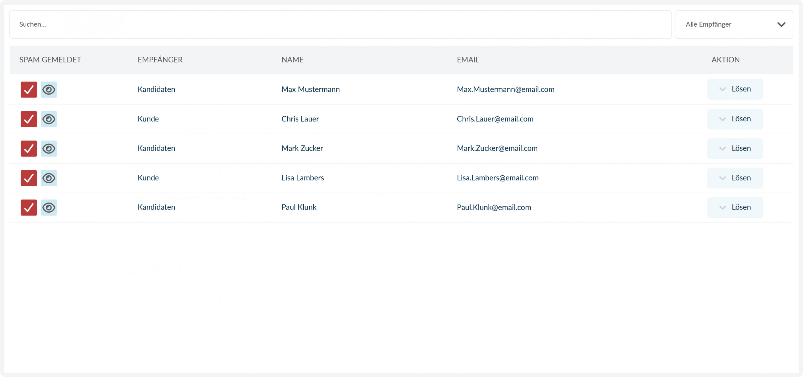 Mit SIPMail erkennen Sie in Echtzeit, wer Ihre eMail als Spam markiert hat – inklusive betroffener Adresse* und Zeitpunkt. Beschwerden werden automatisch unterdrückt: Der Kontakt landet auf der Suppression-Liste und erhält keine weiteren Mailings.